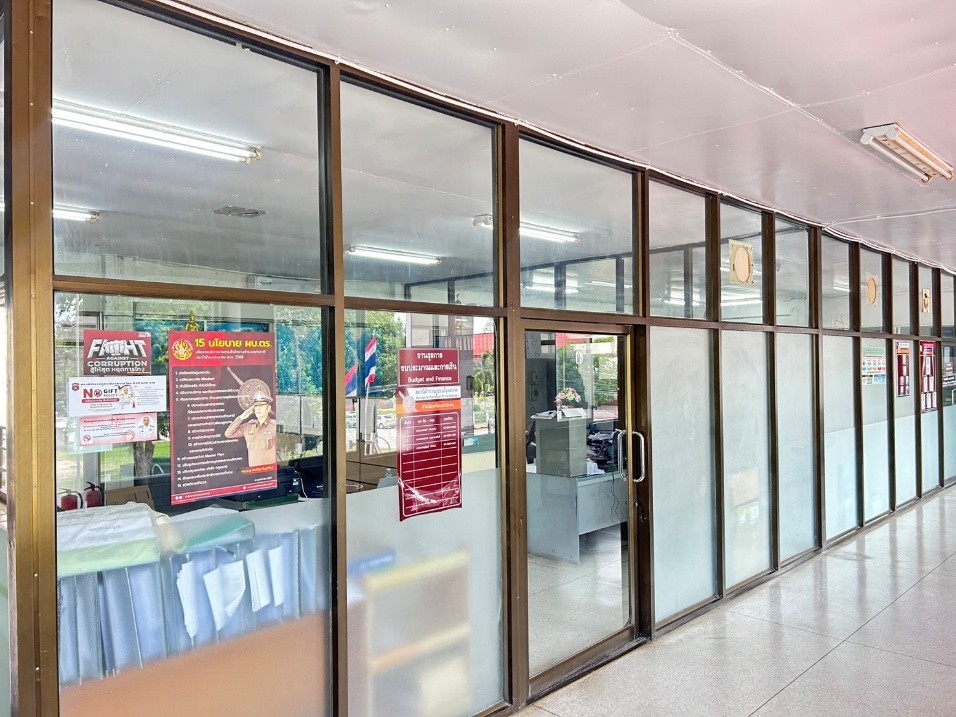 ติดป้ายรณรงค์ต่อต้านการคอร์รัปชั่นบริเวณหน้าหน้องการเงิน จุด one stop service ประชาสัมพันธ์ งานป้อง