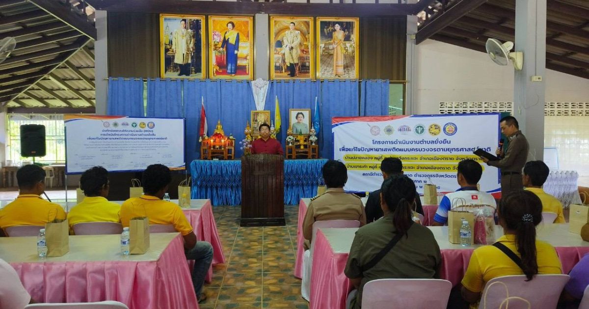 วันที่ 3 เม.ย. 2568 พ.ต.อ.เตชิต กุลกนิษฐรากร ผกก.สภ.เมืองตราด ภจว.ตราด ร่วมกับนายอำเภอเมืองตราด ร่วมเปิดโครงการชุมชนยั่งยืนเพื่อแก้ปัญหายาเสพติดแบบครบวงจรตามยุทธศาสตร์ชาติ ประจำปีงบประมาณ 2568 ที่หมู่ 4 บ้านปลายคลอง และ หมู่ 10 บ้านเขาระกำ ตำบล.วังกระแจะ อำเภอ เมือง จังหวัด ตราด