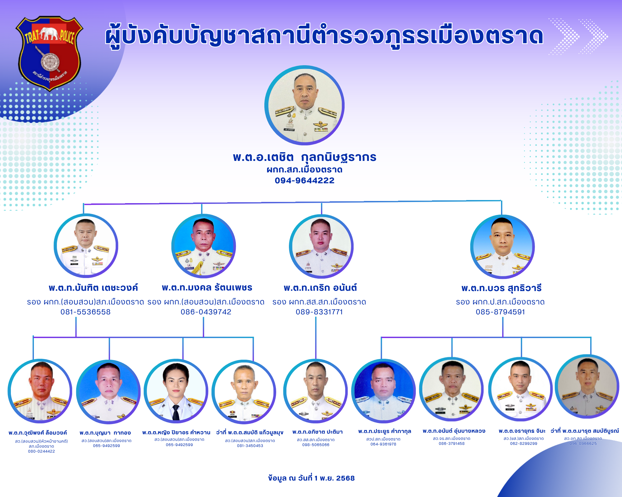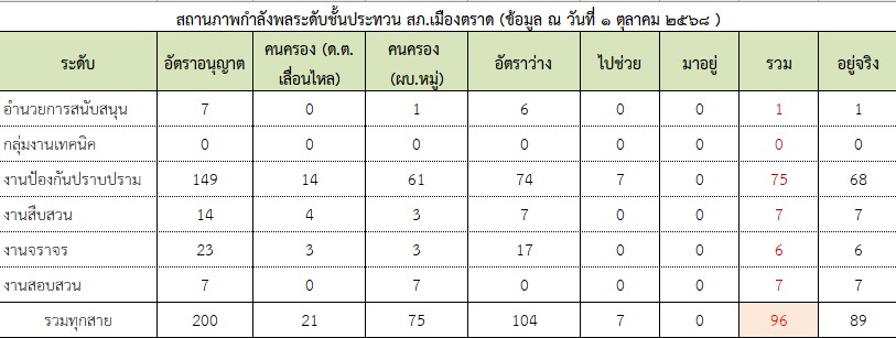 O2 ข้อมูลผู้บังคับบัญชา อัตรากำลังและพื้นที่รับผิดชอบ